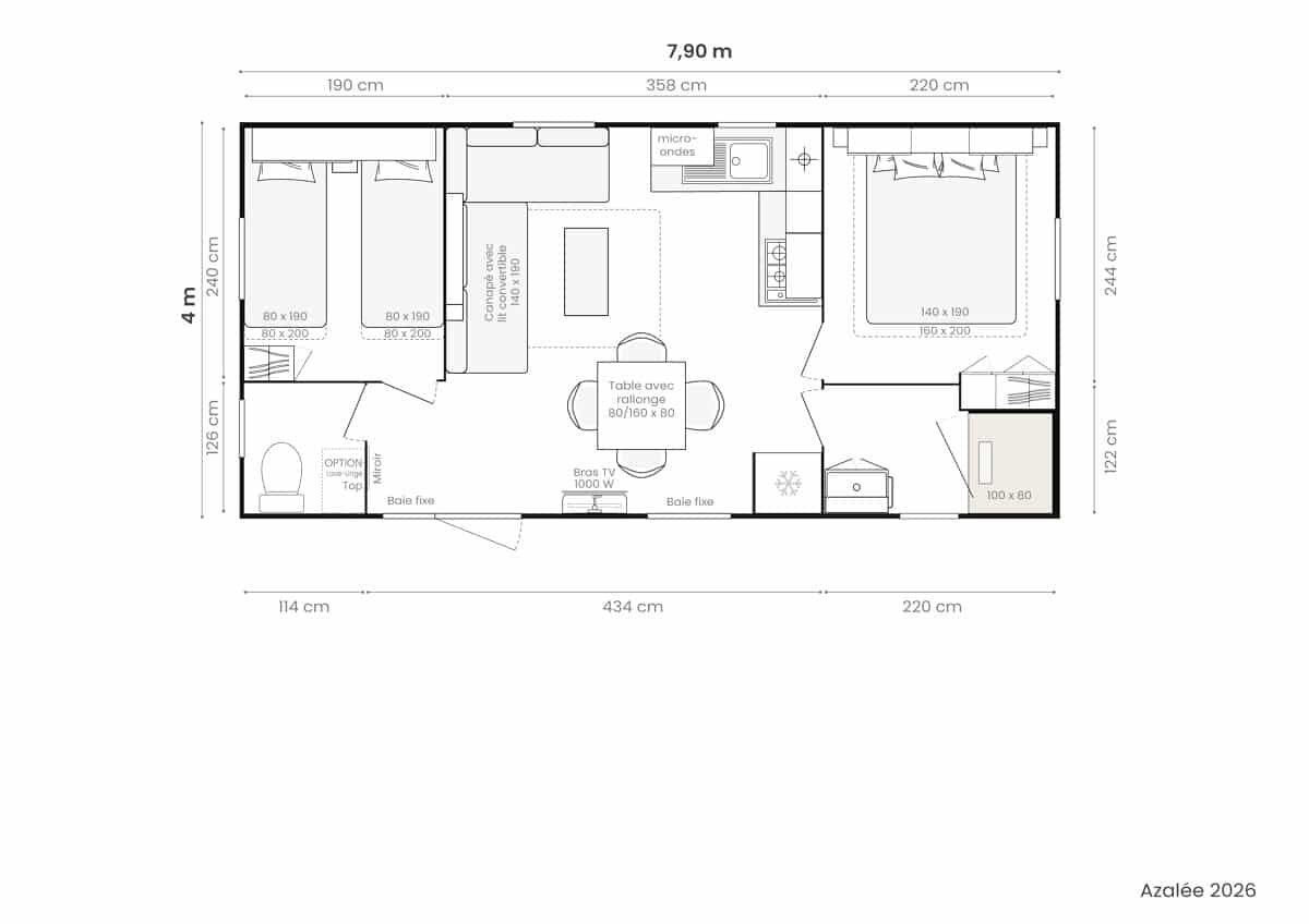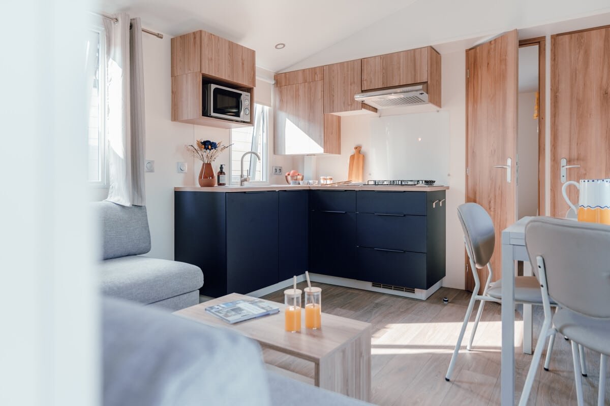 Notre modèle compact 2 chambres et son salon grand confort. Idéal pour profiter d’un petit-déjeuner en famille ou entre amis, dès les premières lueurs du jour.
